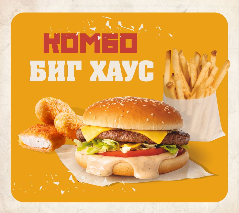 Хаус бургер+картофель фри Cр+наггетсы 3шт